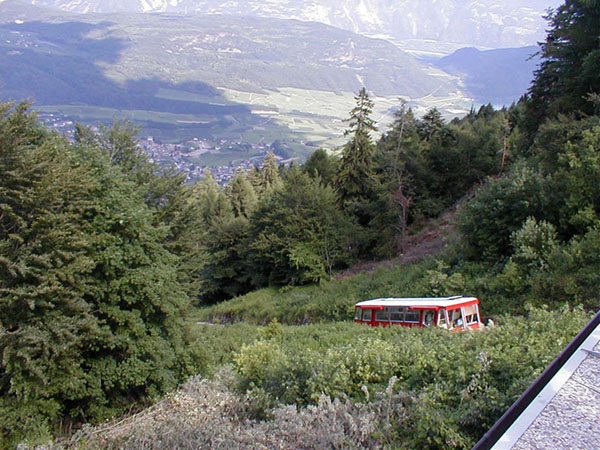 | Bjergbanen op til Mendelpass | I dalen bag Kaltern går motorvej A22 | Bolzano Obstplatz marked | Dolomitterne | ||||||||||