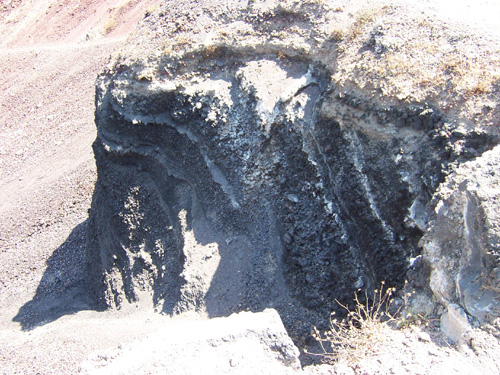 Se billede. Det lyse lag er aske og pimpsten fra det minoiske udbrud.